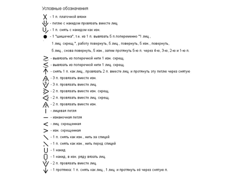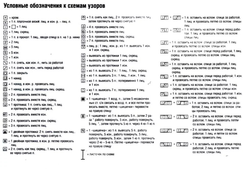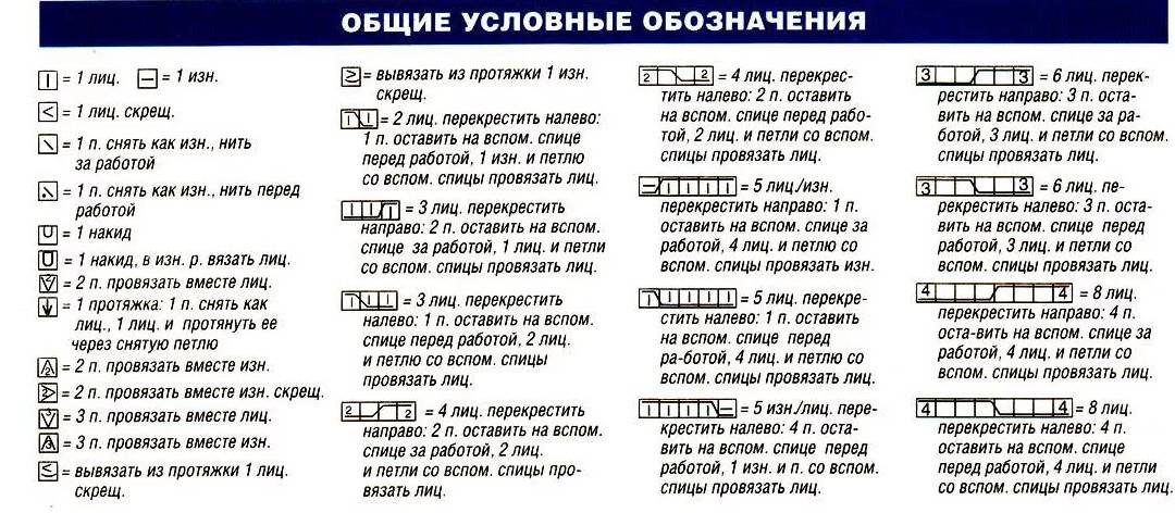 Условные обозначения схем при вязании спицами. Сокращения, обозначения петель и узоров