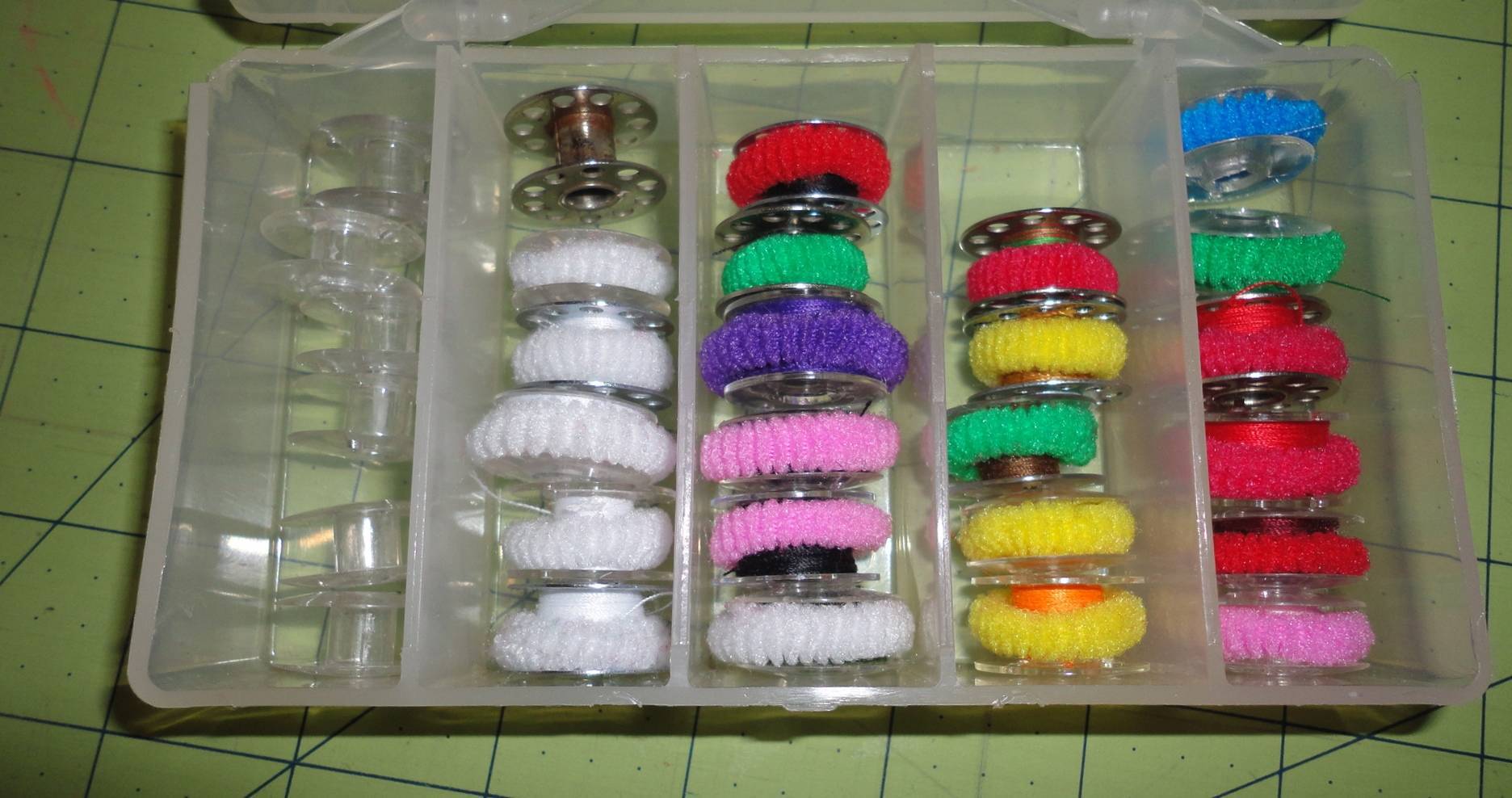 Прозрачная коробка позволяет видеть весь арсенал шпулек