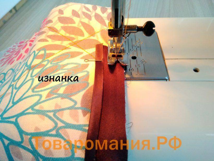 6. Беру косую бейку, разглаживаю один её край утюгом.