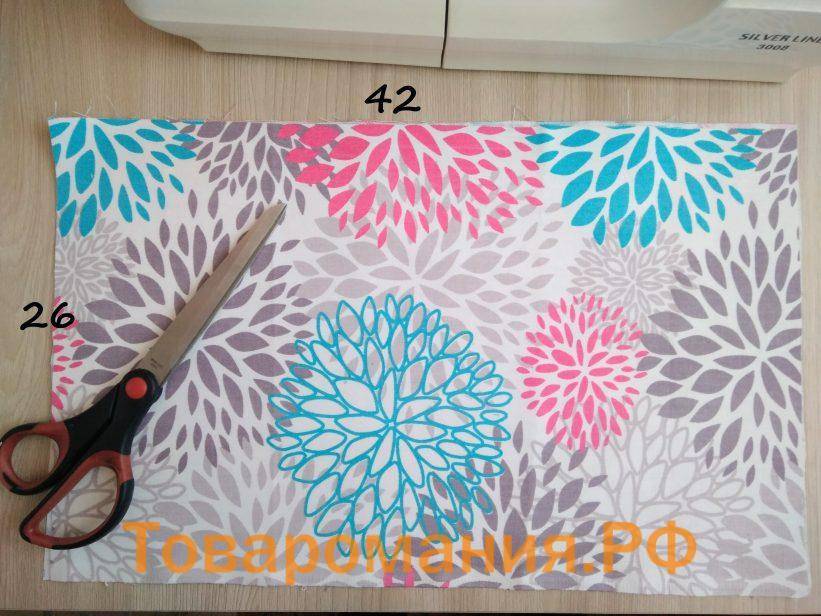 Сделать заготовки из ткани. Для этого из приготовленного лоскута вырезать 2 круга: первый — с припусками по всей окружности на подгиб 10-15 мм, второй — с учетом подгиба и подъема, примерно на 20-25 мм больше основания. С учетом припусков заготовки получатся диаметром примерно 9 и 11 см.