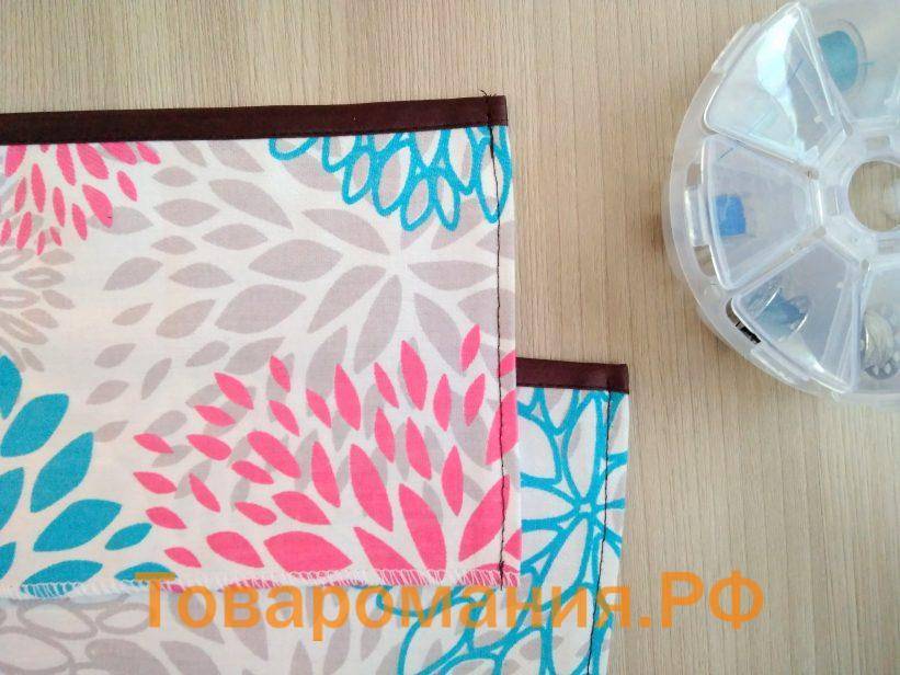 Швом «вперед иголку» или через край мелкими стежками обойти обе выкроенные детали на расстоянии 5 мм от края. Положить их на стол перед собой лицевой стороной вниз.