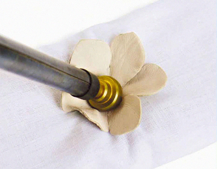 Один из наиболее распространённых приёмов в кожаной флористике — нагревание небольших кусочков кожи для того, чтобы придать им выпуклую форму.