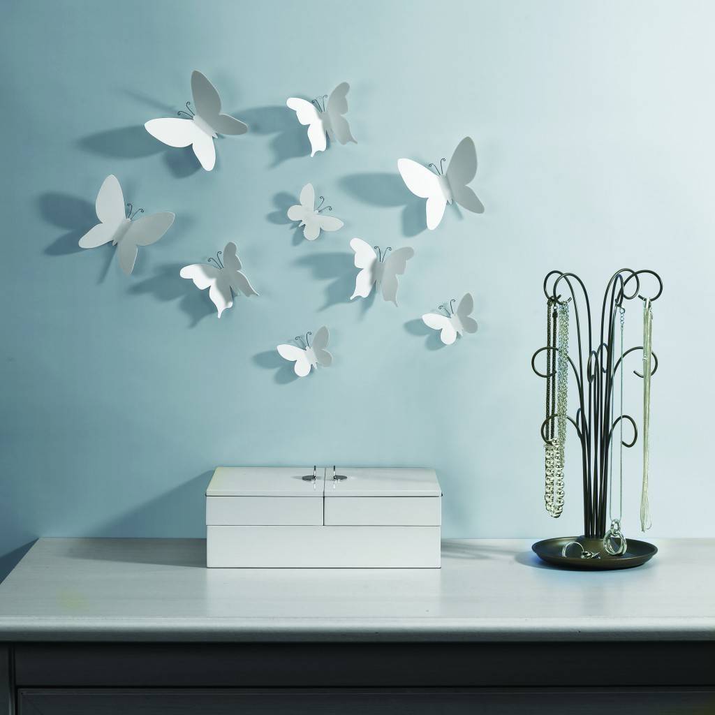 Декоративные бабочки могут представлять собой наклейки, аппликации, панно или другие варианты оформления. Бабочек можно расположить на стене, как в хаотичном порядке, так и создать единую объемную композицию.