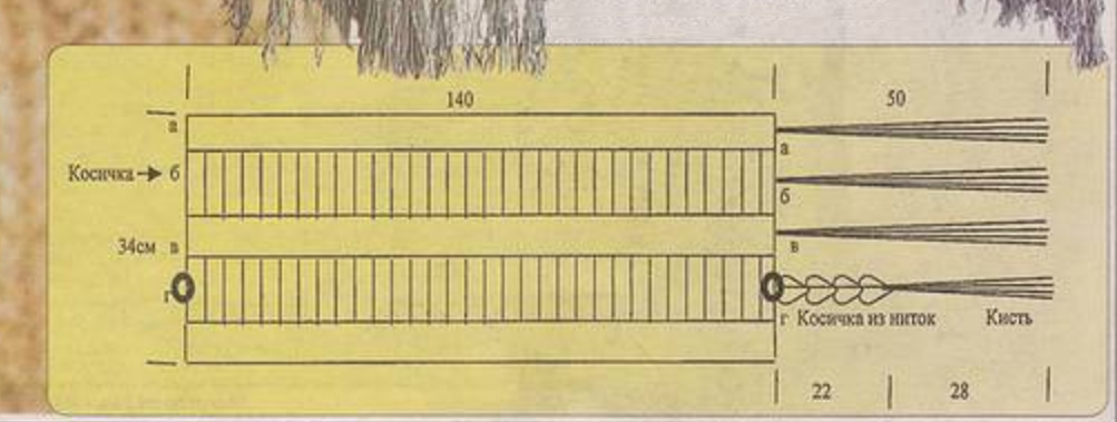 Схема сборки шарфа с косами: