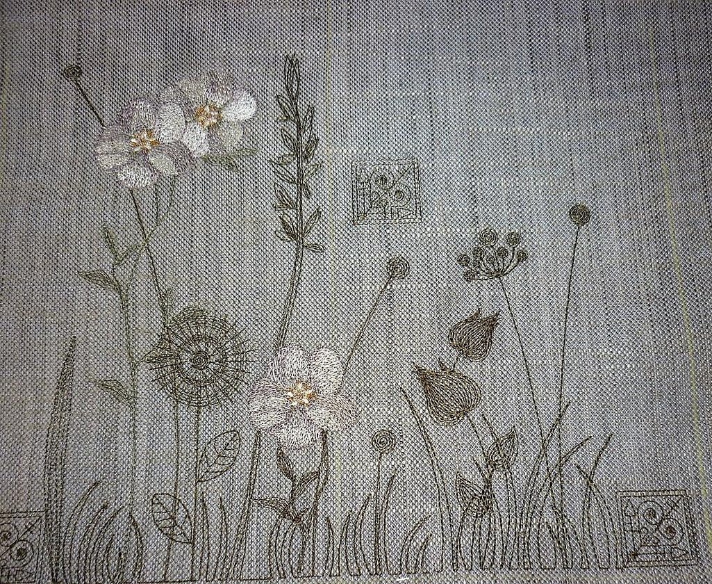 Стебельчатые и другие швы на льняном полотне также смотрятся выгодно. Это дополнительная возможность проявить фантазию и соединить разные направления в вышивке.