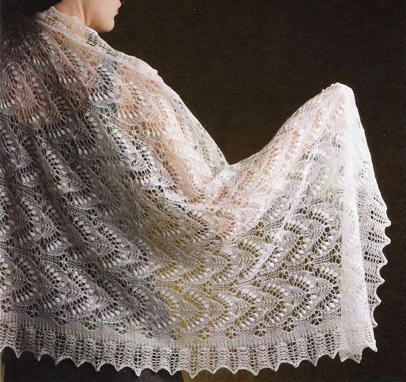 Описание вязания шали Харуни спицами по схеме и видео уроку