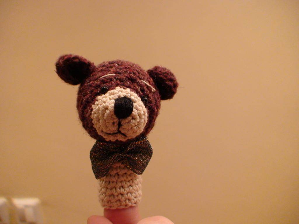 Лапки создают таким же способом, что и нос медведя. После того как все детали будут готовы, их соединяют между собой. Фигуру дополняют фурнитурой и пальчиковая игрушка вязаная крючком – готова.