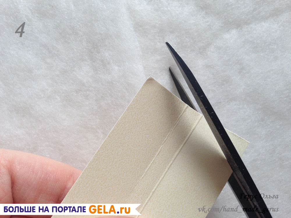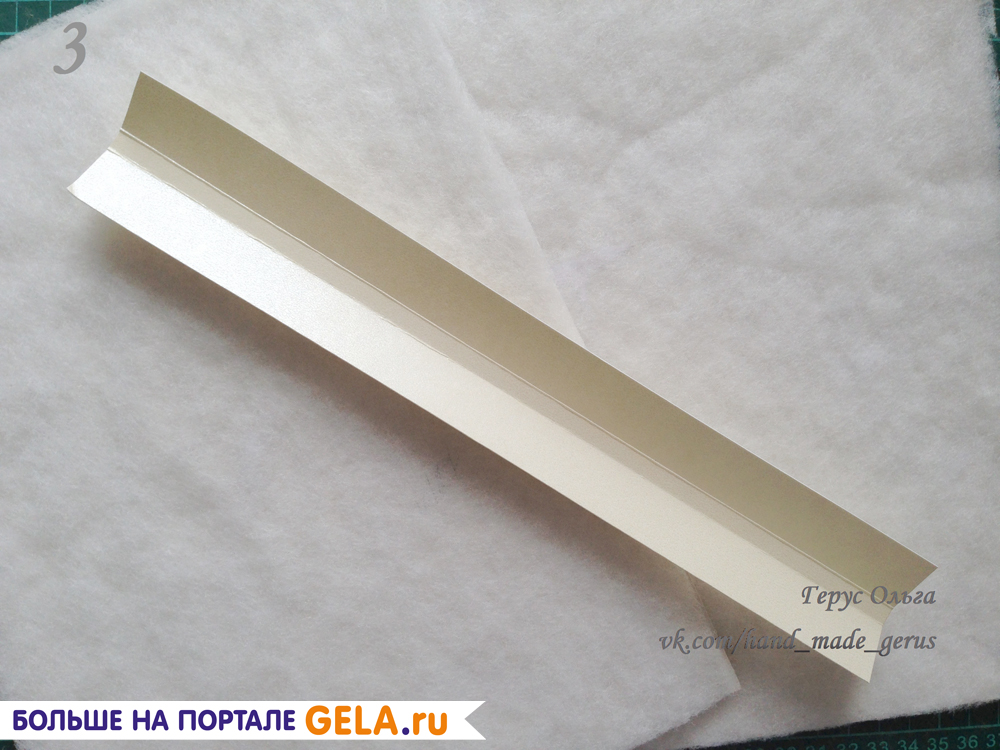 3. Кладем листы рядом, оставляем зазор между ними 5-6 мм по длинной стороне. Чтобы получилось ровно, отрезаем полоску бумаги 27/4,5 см. Проводим палочкой для биговки или шилом ровную линию на расстоянии 2 см, сгибаем. Далее отступаем 0,5 см и делаем те же действия. Должна получиться полоска как на фото 3: