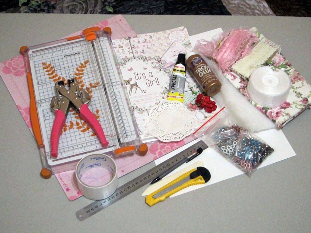 - Бумага для скрапбукинга (соответственно для девочки цветовая гамма в розовых, персиковых и красных тонах, а для мальчика – в голубых, салатовых).