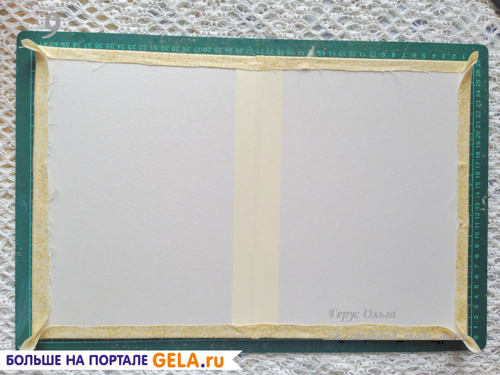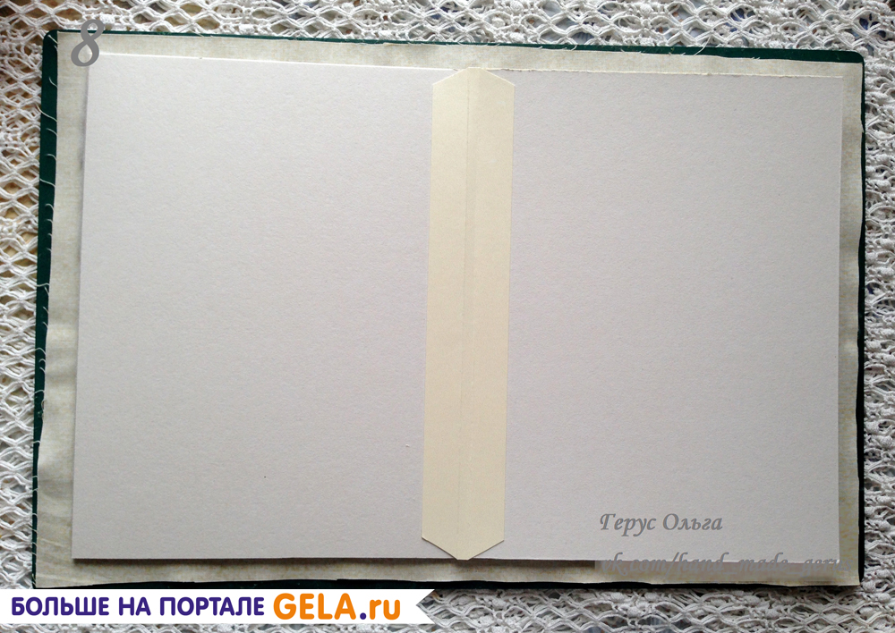 11. Форзацы приклеиваем тонкой полосой по краю основы. Несколько капель клея необходимо добавить и на середину основы. Кончено же, каждый форзац необходимо приклеивать по отдельности.