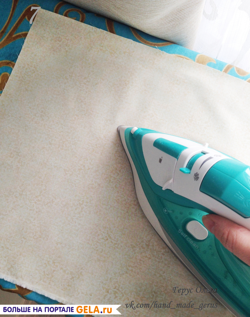 7. Берем отрез ткани и хорошо отпариваем его с изнаночной стороны. Я рекомендую использовать для этого хлопок.