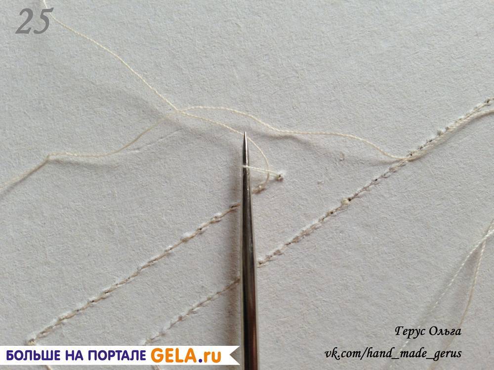 25. Обязательно вытягиваем все ниточки с внешней стороны – удобнее всего это делать портновским шилом. Завязываем узелки.