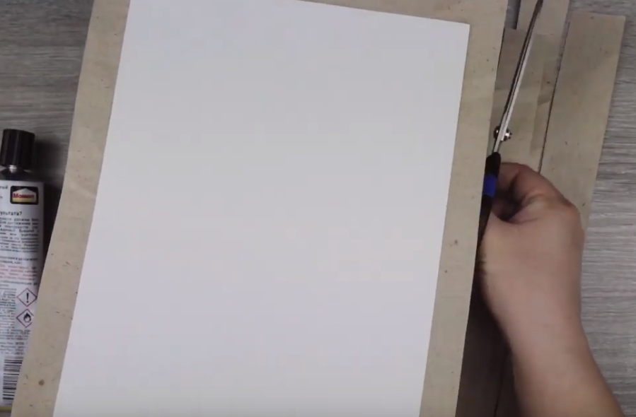 - От края картона отступаем 1 см и лишнюю крафт-бумагу отрезаем.