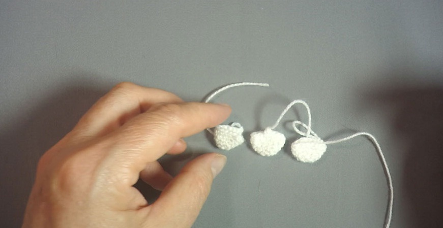 - последующие два ряда вяжем по 9 столбиков и делаем петельку. Чтобы прибавить петли необходимо вставить крючок дважды в одну петельку. Таким образом, делаем три детали.