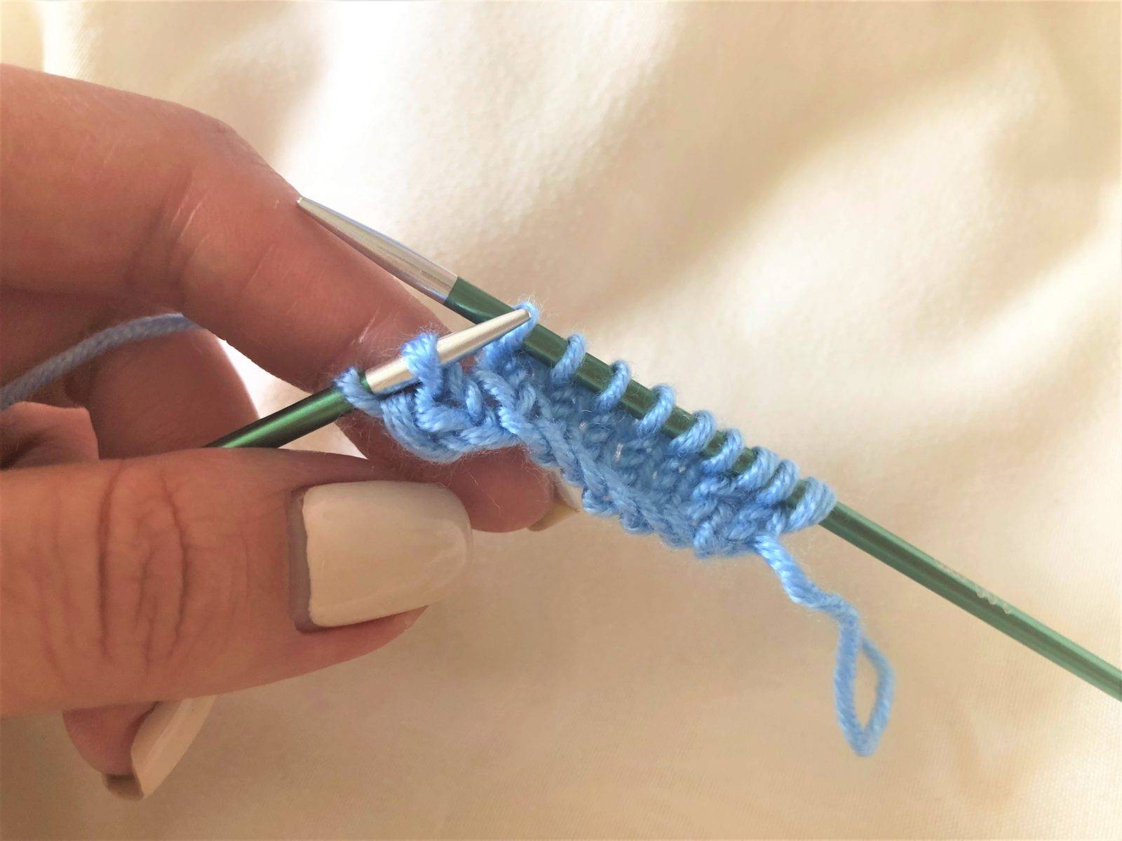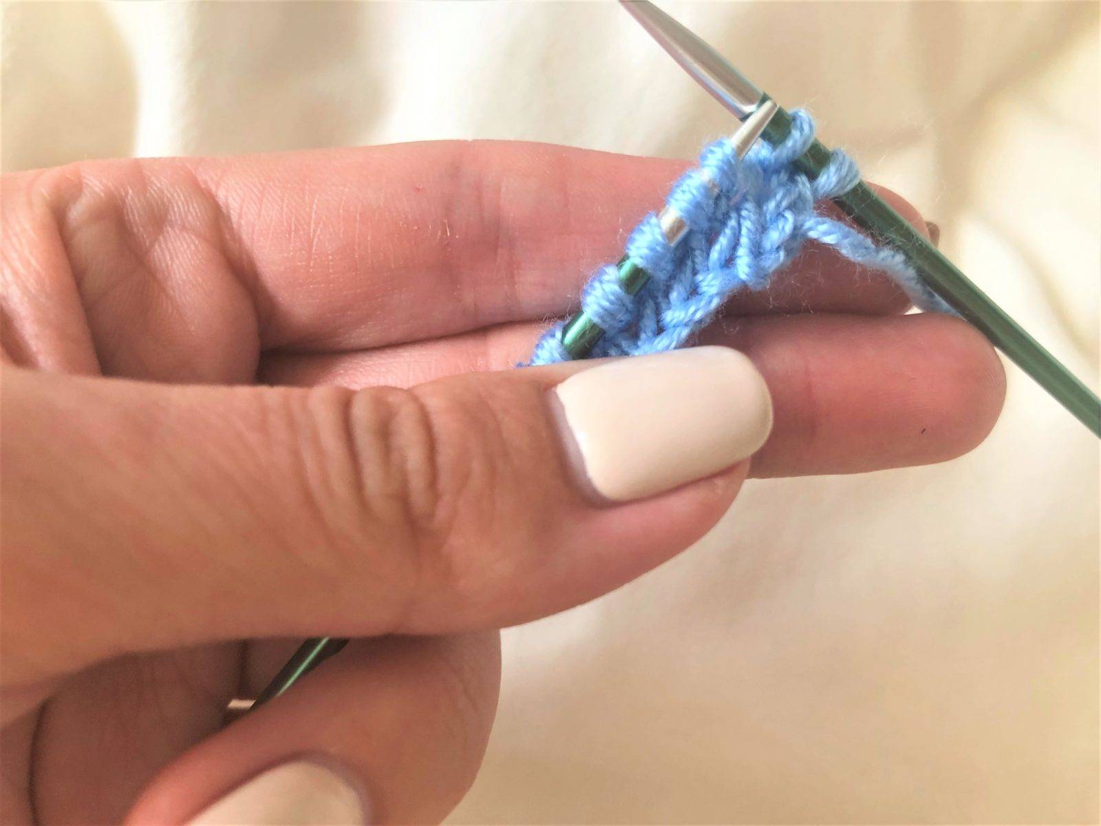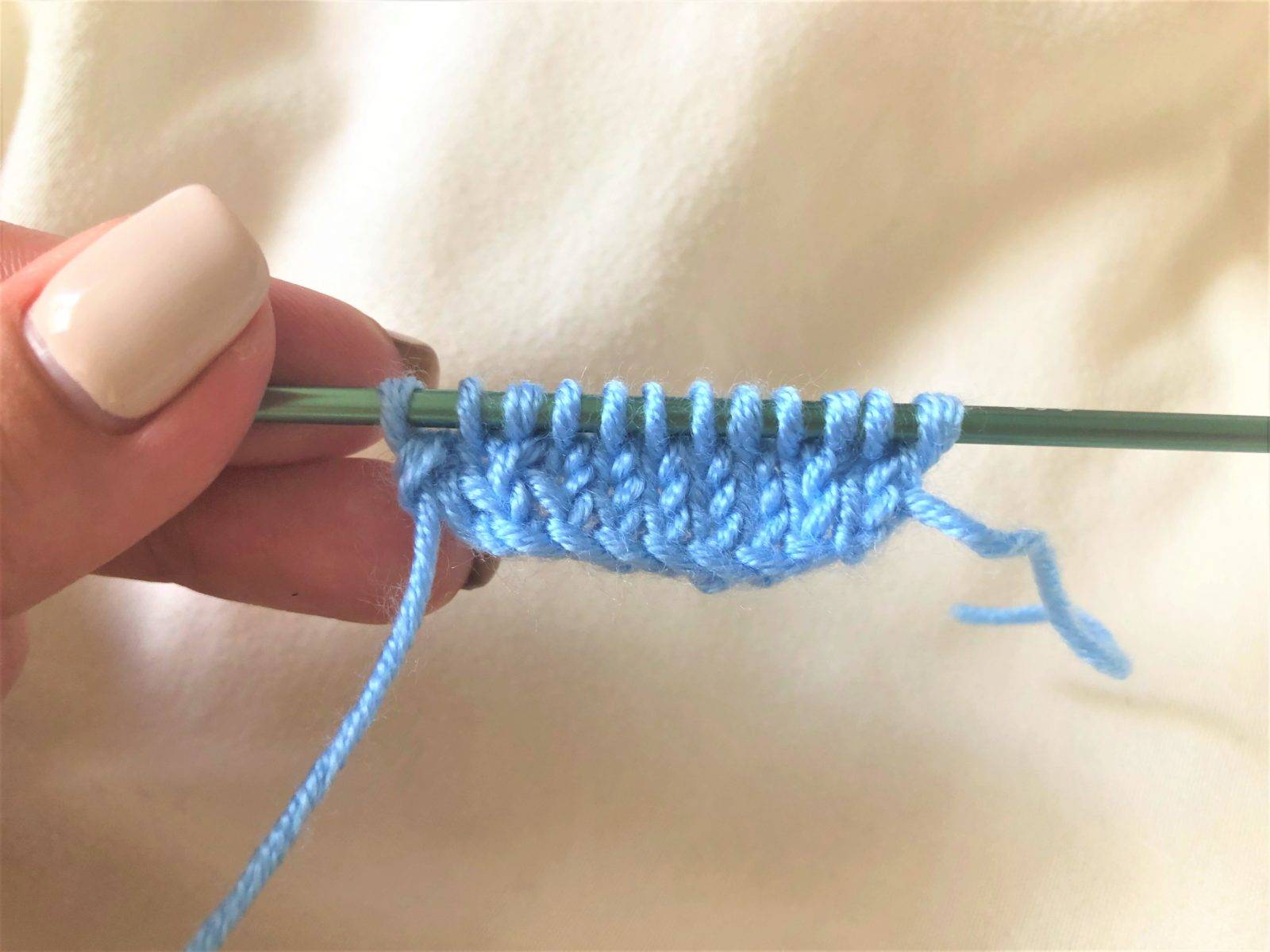 - Вяжите все петли лицевыми петлями в течение нескольких рядов, чтобы создать гладкую поверхность.