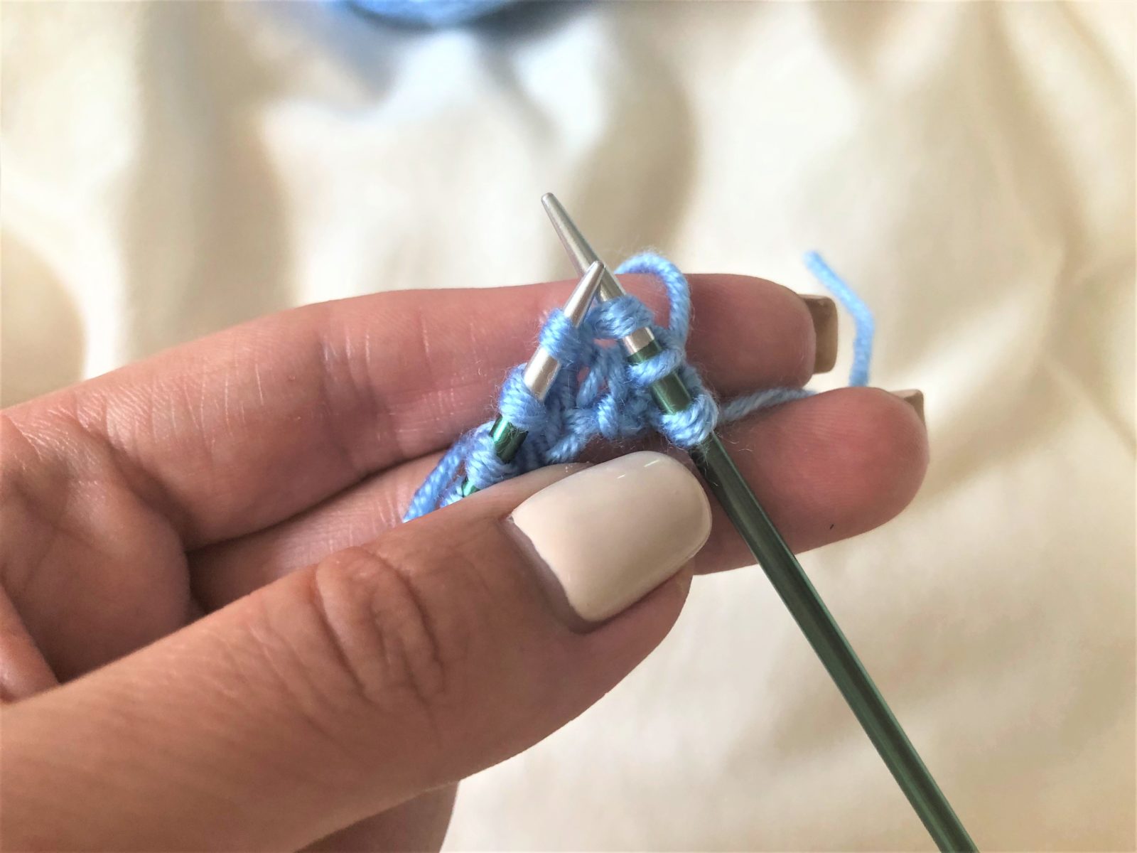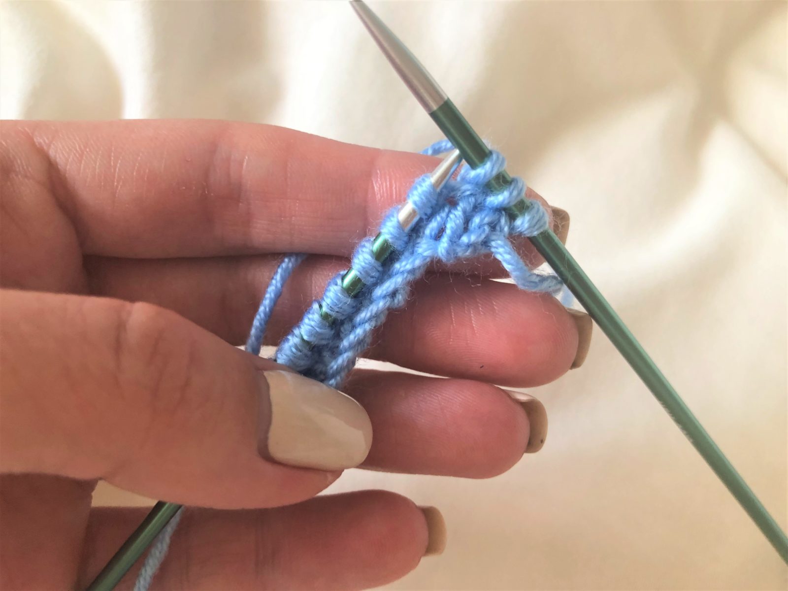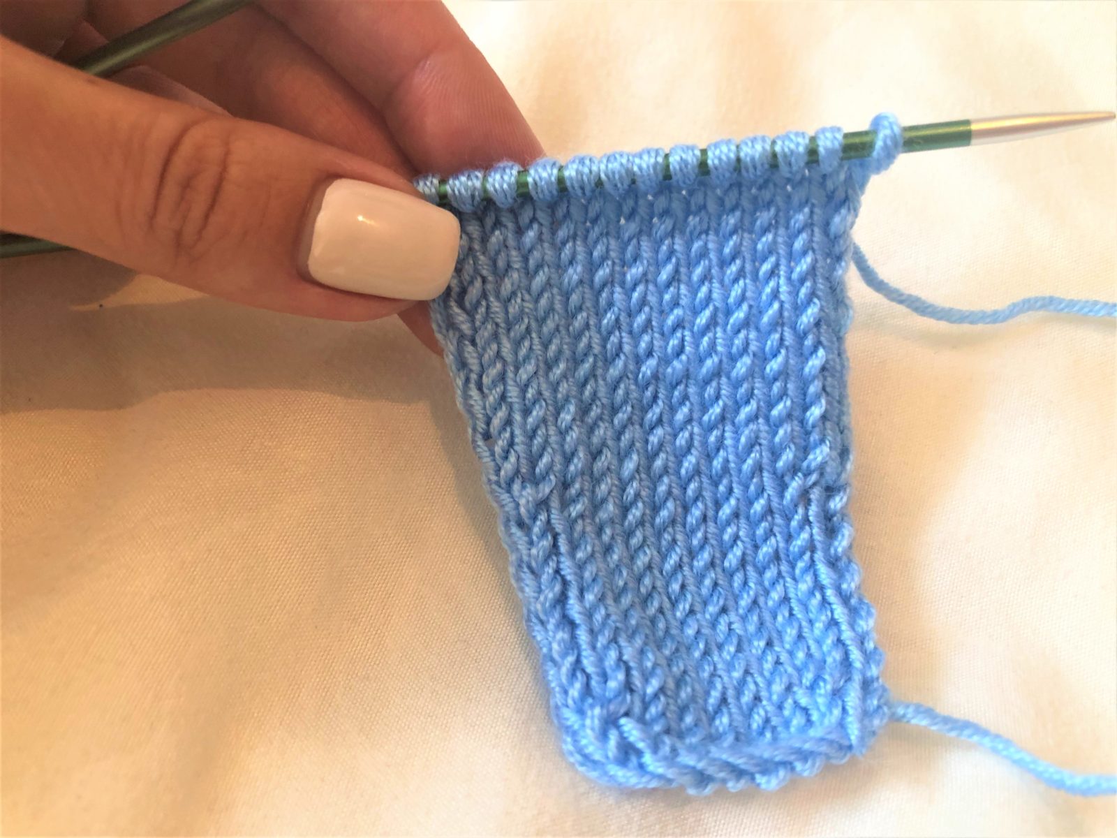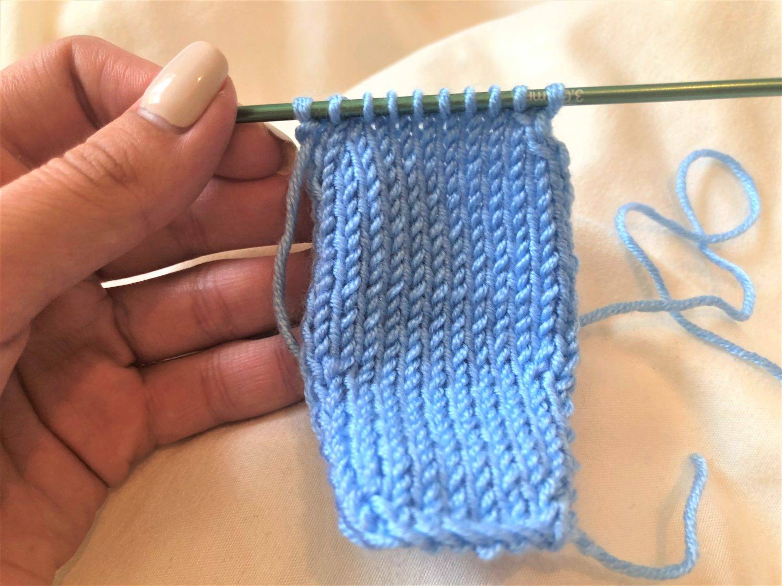 - Вяжите все петли лицевыми петлями в течение нескольких рядов, чтобы создать гладкую поверхность.