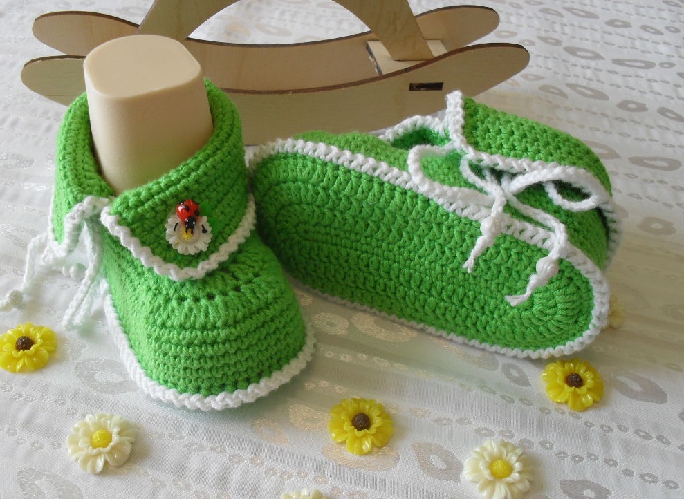 Эти милые пинетки невероятно трогательно смотрятся на меленьких ножках, они тоже подходят и для девочек, и для мальчиков.