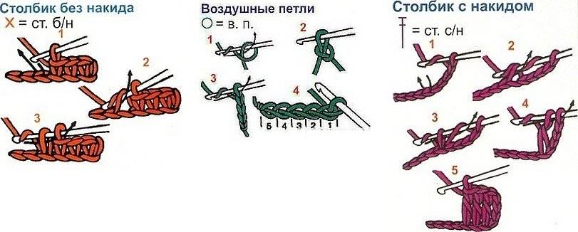 - Ст. б. н. (или ст. б/н) – столбик без накида;