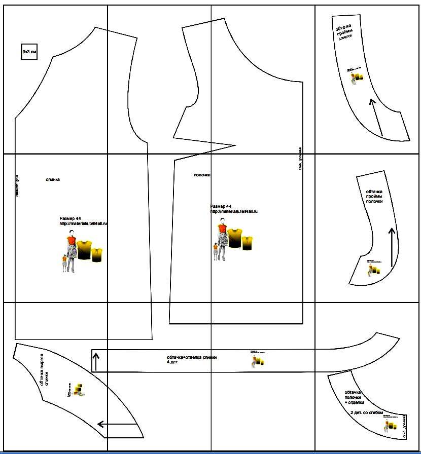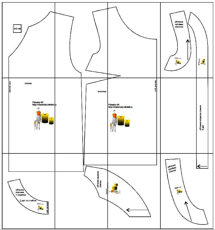 В качестве основы будем использовать выкройку топа со спущенным рукавом. Она выполнена на рост 168 см для следующих размеров: