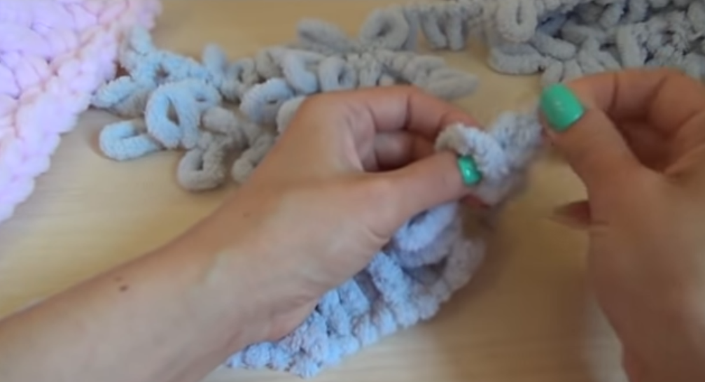 Большинство людей в мастер-классах по пледам из пуффи на ютубе забивают на тот момент, что у пледа должен быть кант. Без канта изделие выглядит не таким завершенным.