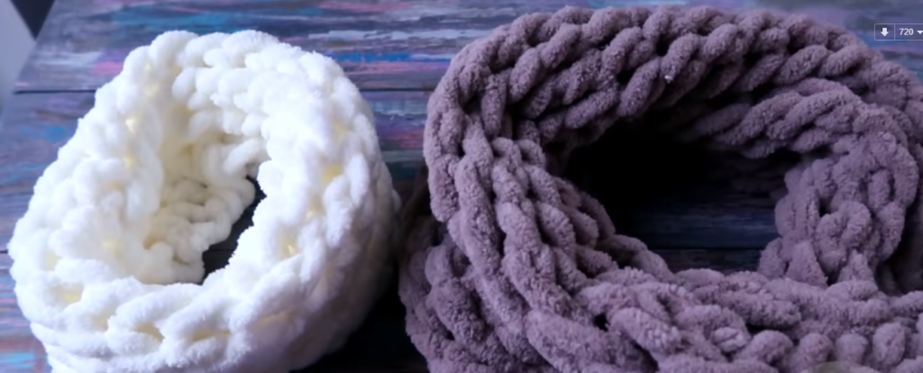 Ещё один популярный вариант использования Ализе Пуффи – модный шарф снуд, сделать его можно за 10 мин: