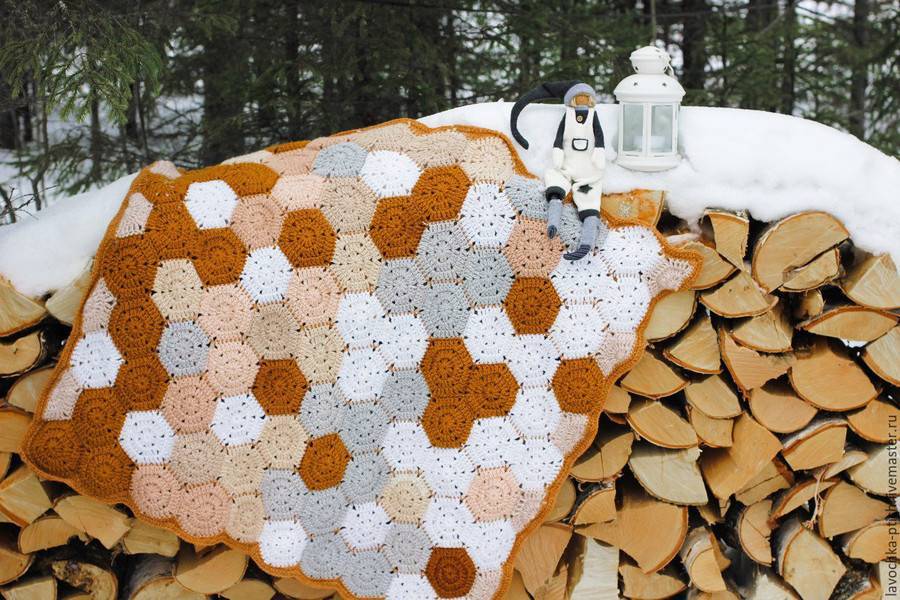 Помимо квадратов, для изготовления больших изделий используют 6-гранные мотивы и 8-граники (спицами или крючком).