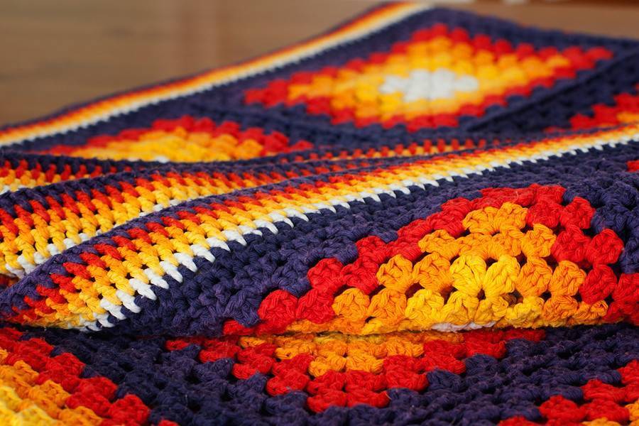 Вязаные мотивы могут отличаться по размерам и цветам. Классический квадрат можно увеличивать до бесконечности.