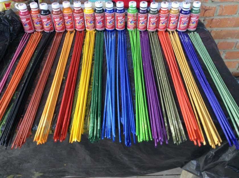 - Покрасить палочки можно как сразу же после изготовления, так и после того, как поделка будет готова полностью.