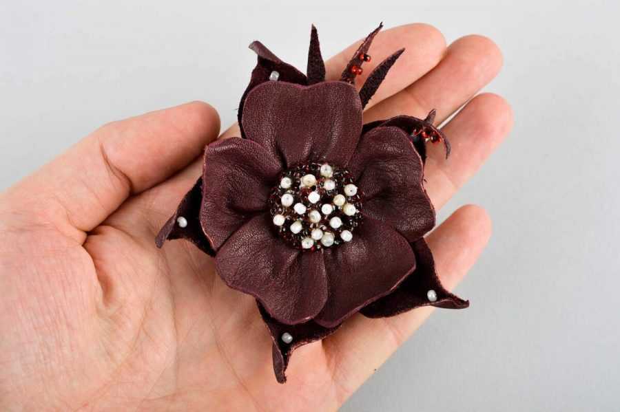 Раз речь зашла об украшении причесок, нельзя не упомянуть заколки в виде цветов из кусочков кожи.
