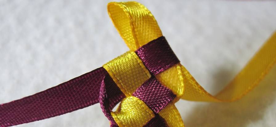 - · Новичкам будет полезно закреплять ленты булавками во время работы, а в начале плетения завязывать концы узлом.