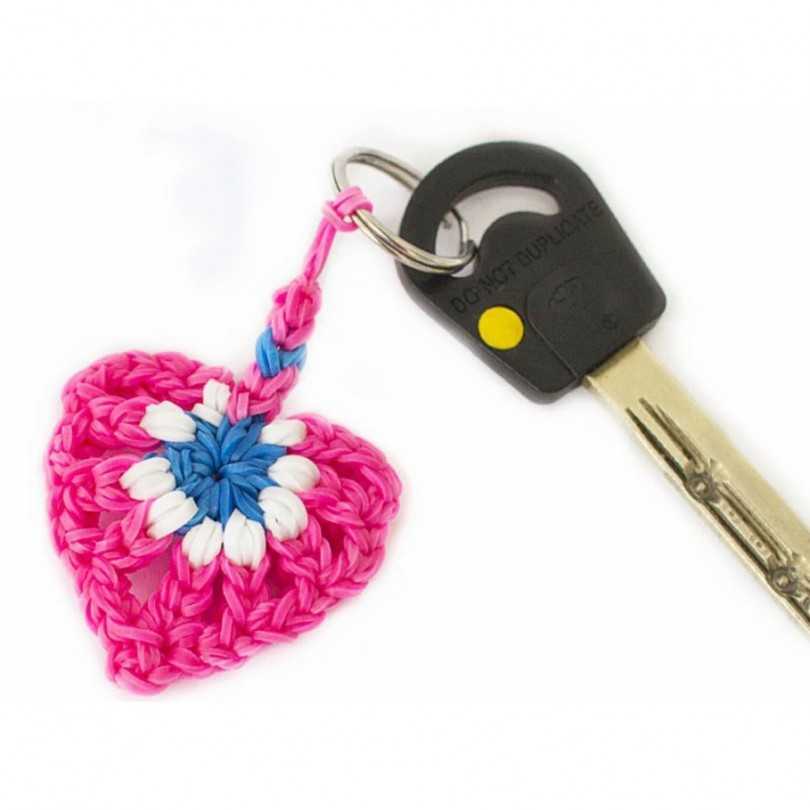 Этого достаточно, чтобы освоить азы плетения, а дальше можно учиться самостоятельно, покупая в магазинах для рукоделия обучающие наборы. В них входят схемы плетения определенного сувенира, крючок и пакетики с резинками нужных цветов. Ориентируясь на описание, приложенное к комплекту можно сплести сувенир своими руками.