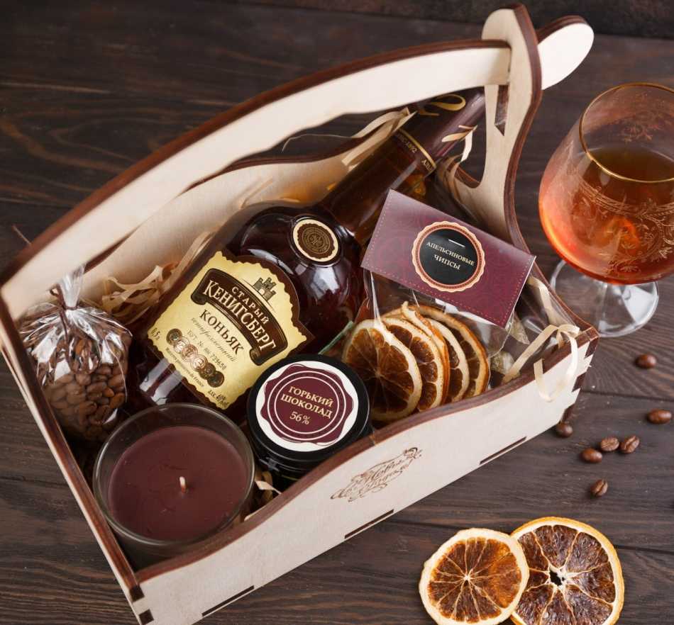 Соберите корзинку с разными вкусностями, которые любит ваш муж. Например, уложите в плетеную корзину бутылку хорошего алкоголя, темный шоколад, сухофрукты, вкусный кофе или чай.