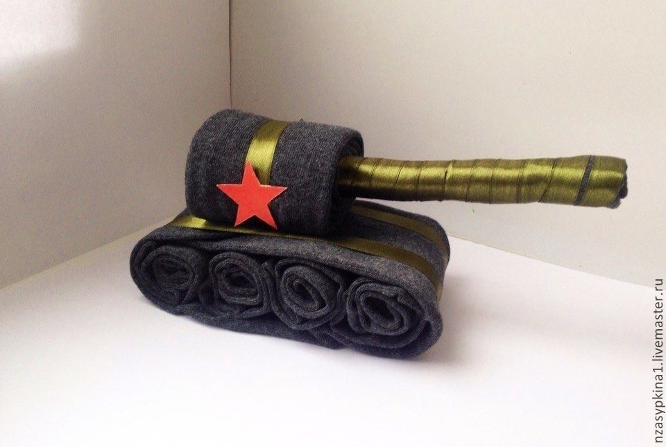 Скручивать их нужно туго и желательно закреплять канцелярскими резиночками. Ниже приведён мастер-класс «Танк из носков своими руками на 23 февраля», который поможет сделать оригинальный подарок.