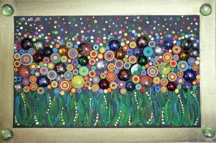 Следующая картина цветов из пуговиц, изображение настоящего лесного изыска.