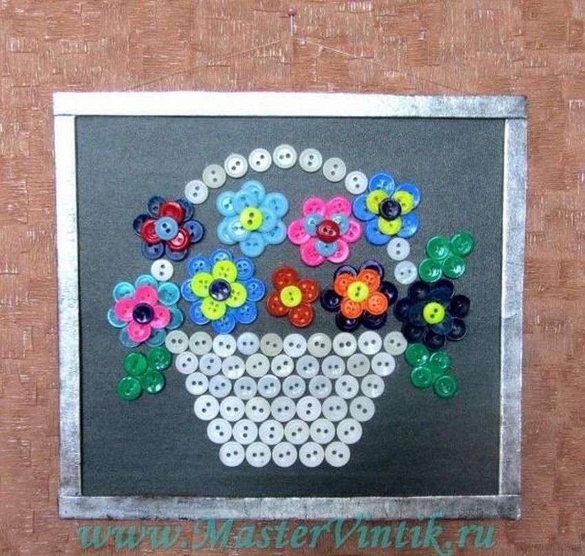 «Цветы в вазе», прекрасная интерпретация из пуговиц.