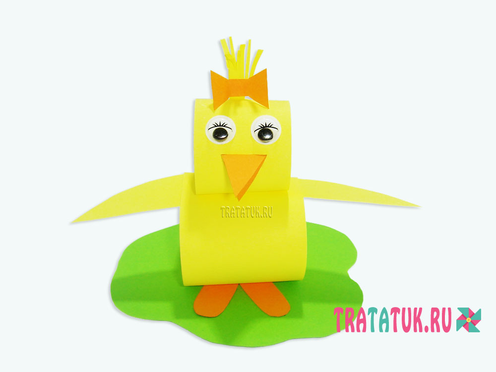 Небрежно, казалось бы, смятый клочок в считанные минуты превращается во взъерошенного птенца. Жёлтый цвет предаст ему реалистичности.