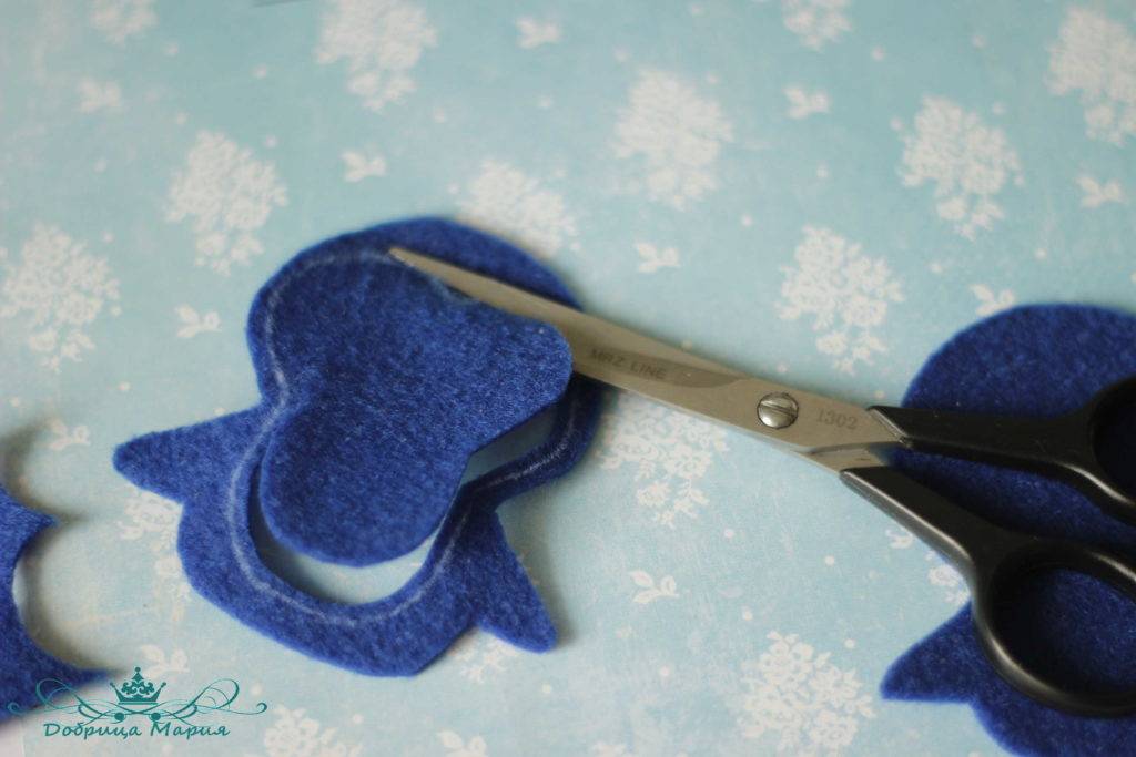 - Вырежьте две одинаковые детали из фетра используя созданный шаблон;