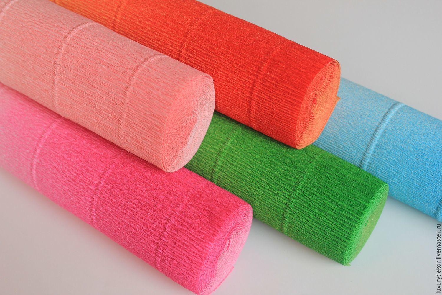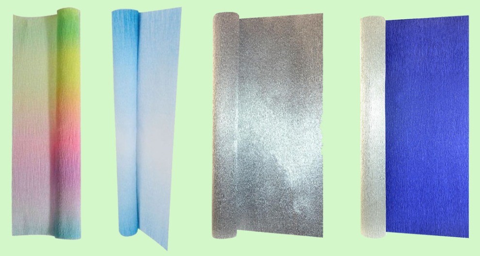 Бумага для творчества и упаковки подарков: плотность 30–50 гр, мелкие складки, высота которых не регламентируется. Для флористики мало подходит, поскольку плохо растягивается, рвется и от клея размокает.