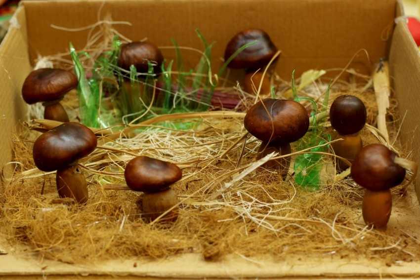 Обычно для насекомых необходимы каштаны и их верхний слой. Их целиком сушат. Когда плоды основательно просохли, к ним снизу крепят овал из коричневого пластилина. Лапки состоят из небольших веточек, которые размещают с двух сторон.