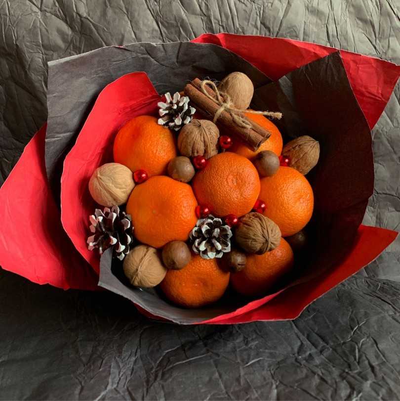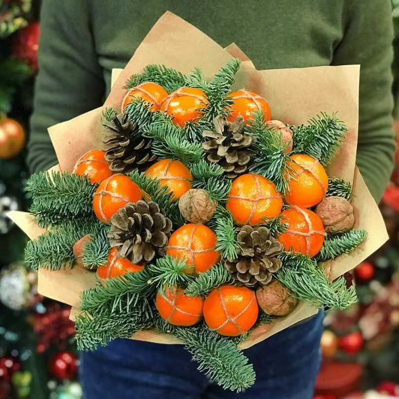 Предлагаем еще одну интересную идею, которая разнообразит изготовление съедобных подарков своими руками на Новый 2022 год. Это будет букет из орехов – прекрасный презент для друзей, близких, коллег, воспитателей и учителей.