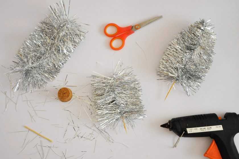 Такая новогодняя поделка своими руками делается очень легко. Смело зовите малышей — они отлично справятся под вашим руководством.