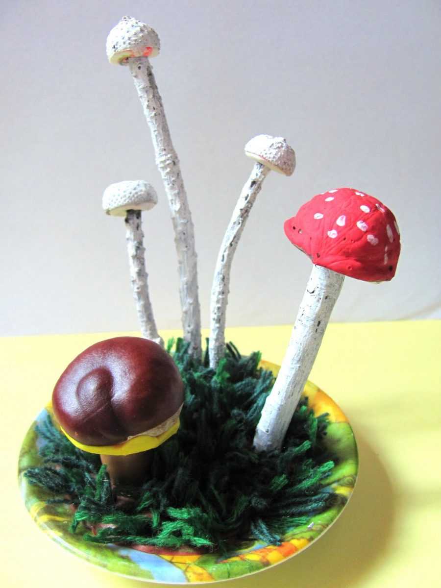 При выполнении поделки, главное не измазаться клеем. Для этого желательно после того, как зафиксировали шляпку и веточку, держать заготовку ножкой вверх.