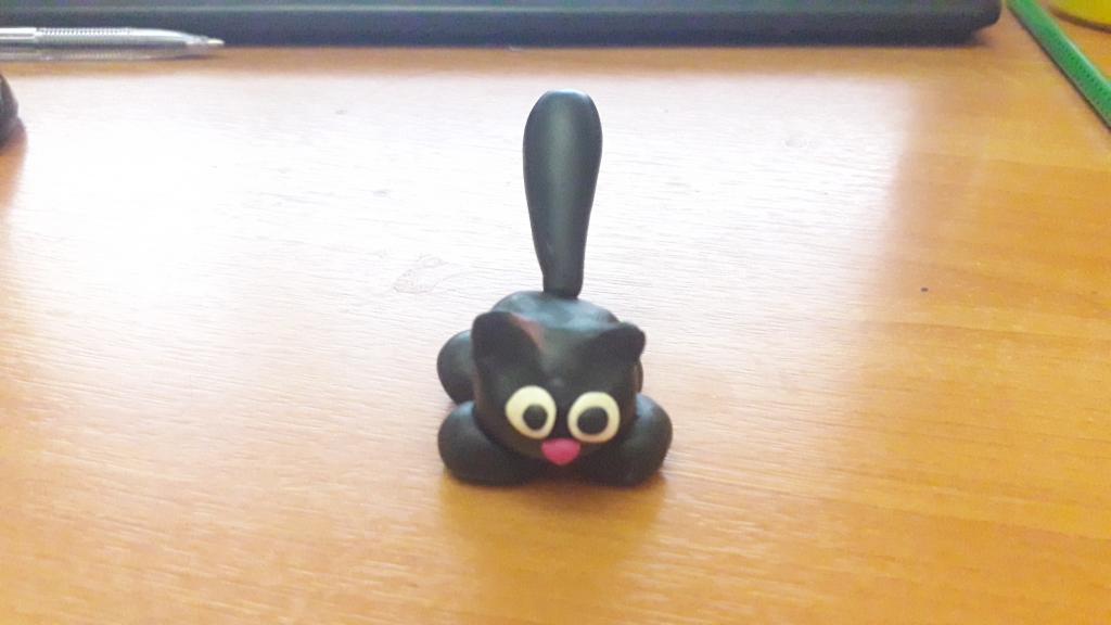 Лепим из пластилина пошагово кошку. Как это сделать? Для работы нам понадобится брусок пластилина черного цвета и совсем немного белого и розового для деталей.
