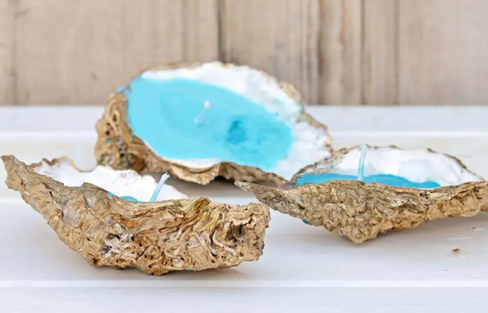 Эти свечи ручной работы из ракушек устриц сделать довольно просто.