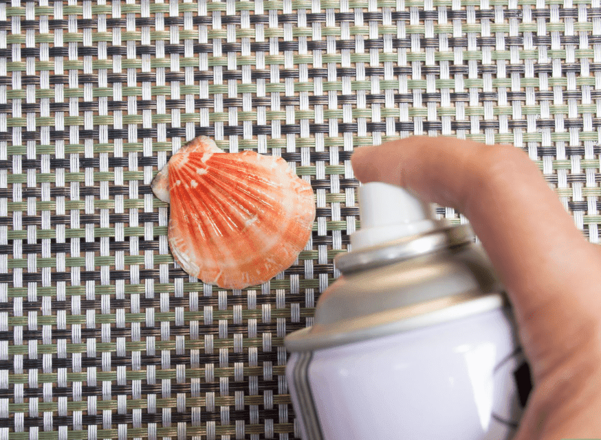 - Следующий шаг предусматривает наклеивание на скелет моллюска желаемые сегменты бумажных салфеток. Для этого подойдет клей ПВА. Сначала клеящим средством следует смазать морскую заготовку, положить бумагу и затем опять кисточкой с клеем обработать поверхность.