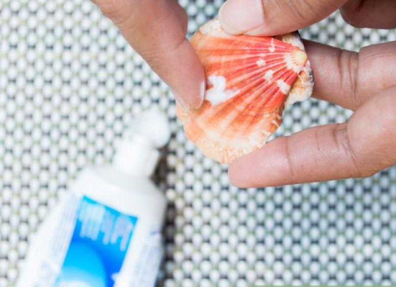- Если ракушки без остатков моллюсков, достаточно их замочить в хлористом растворе. Нужно смешать «Туалетный утенок» или обычную хлорку с водой в пропорции 50х50 и замочить раковины на полчаса. Если они очень грязные, после отмачивания их можно почистить зубной щеткой с мылом или пастой.
