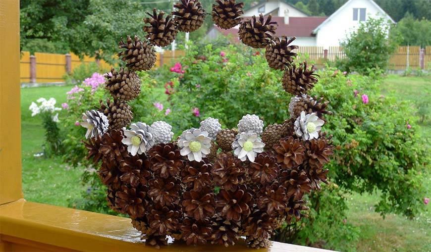 Поделки из шишек разных деревьев смотрятся эффектно и интересно