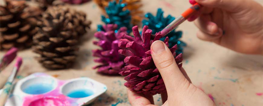 Используйте фетр, чтобы превратить обычную сосновую шишку в ярко раскрашенную лису с хвостом, мордочкой и лапами. Внимательно следите за своими детьми, когда они используют пистолет для горячего клея . Добавьте черный, коричневый и белый цвета, но вы также можете позволить им смешивать другие оттенки, чтобы повысить их творческий потенциал.