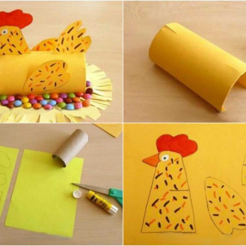 - курицу усаживают в гнездо – по бокам можно положить овальные «яйца», выстриженные из картона.
