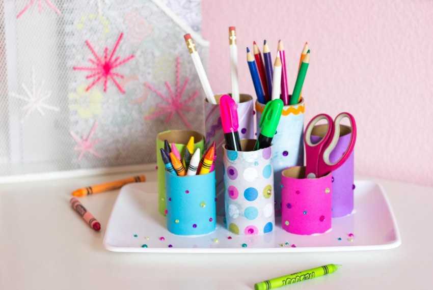 Рулончики от бумаги или бумажных полотенец отлично подойдут для хранения ручек и карандашей, канцелярских принадлежностей, а также всяких мелочей.